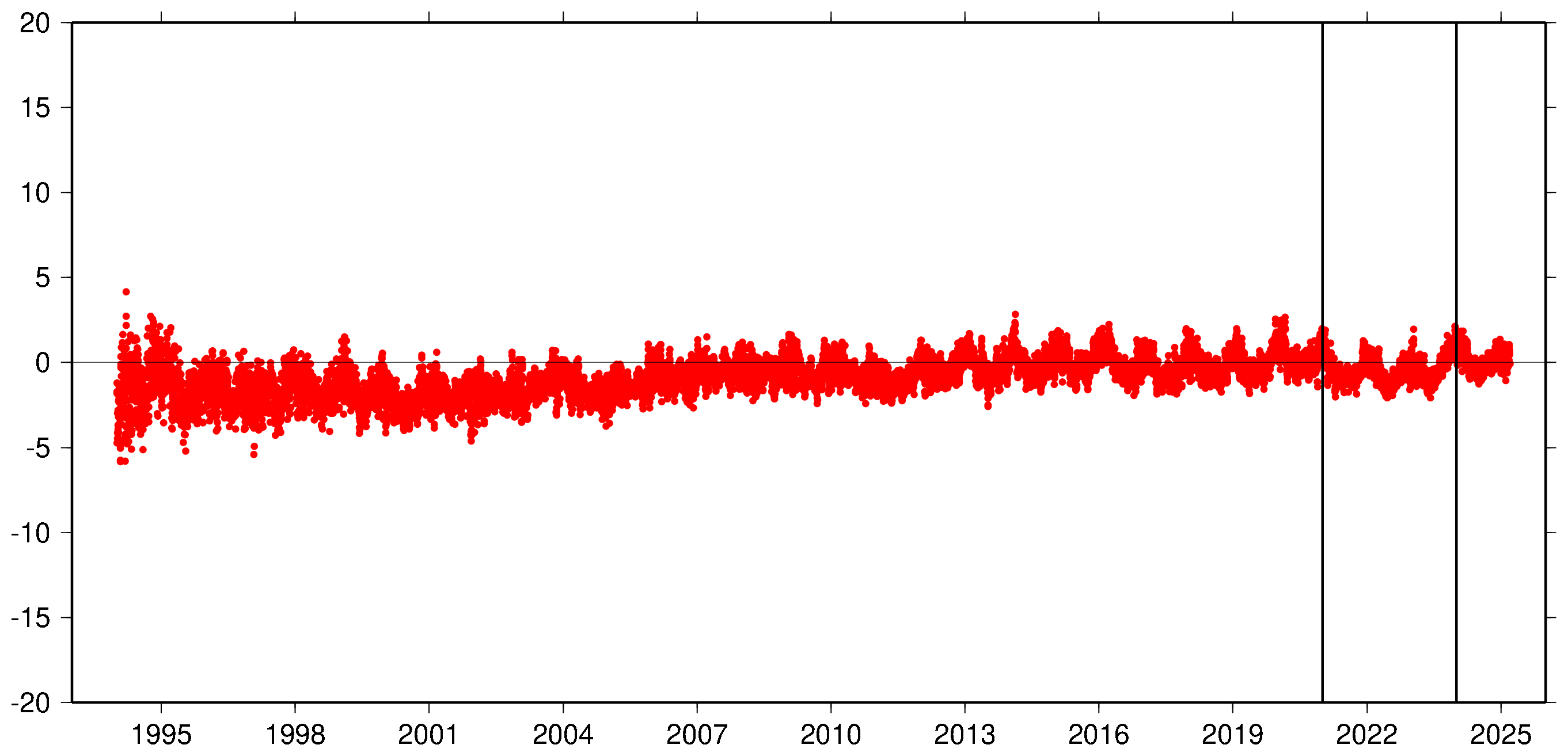 ITRF2020-u2024 is the second ITRF020 update, generated by adding four years (2021.0 – 2025.0) of data after the end of the ITRF2020 input data. The four Technique Centers (IDS, IGS, ILRS, IVS) who provided four years of extended time series of station positions and Earth Orientation Parameters (EOPs) were asked to use the same models and strategies as in their contributions to ITRF2020.